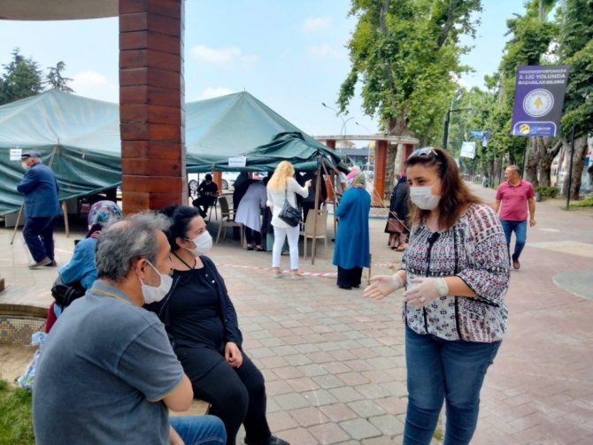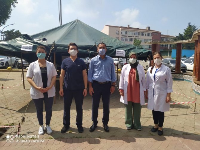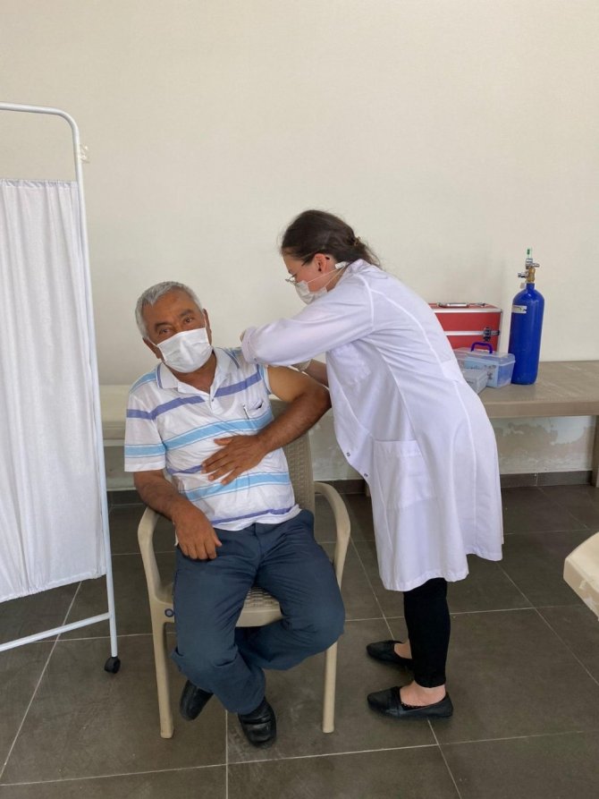 İlçede kurulan aşı çadırına yoğun ilgi
