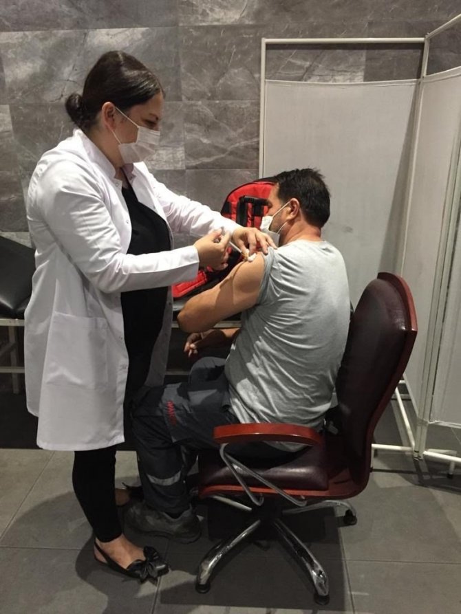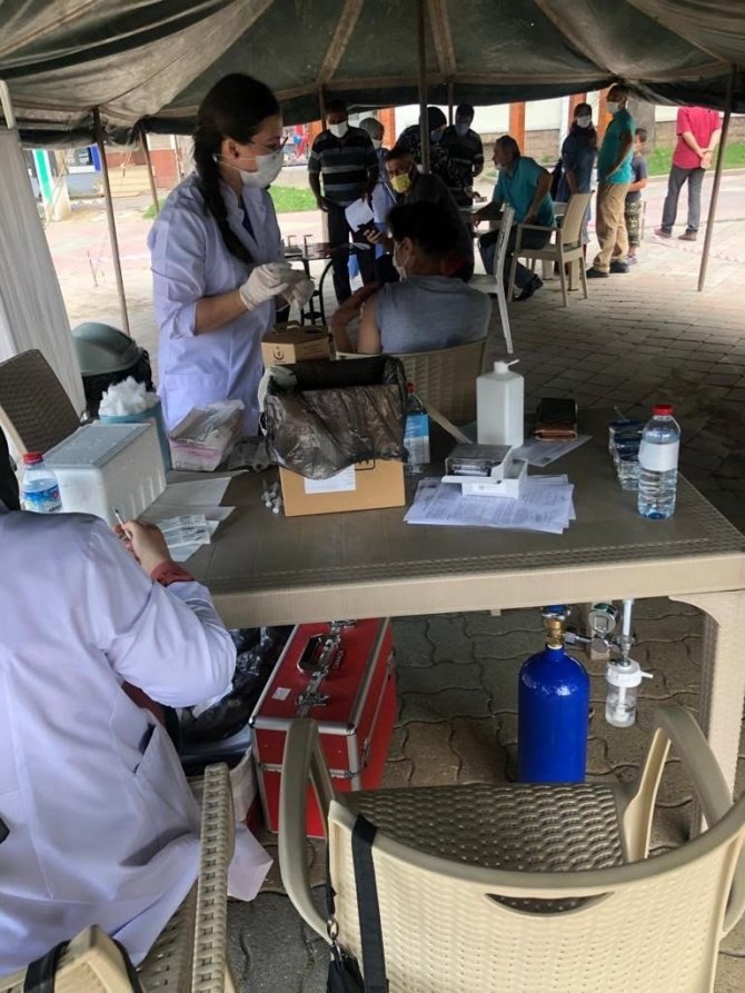Sakarya'nın Hendek ilçesinde korona virüs aşılama çalışmaları kapsamında İlçe Sağlık Müdürlüğü tarafından yoğunluğun azaltılması için aşı çadırı kuruldu.