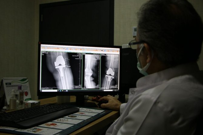 İleri aşamalı eklem kireçlenmelerinin ciddi sorunlara sebebiyet verdiğini belirten Doç. Dr. Bulut, "İleri aşamalı kıkırdak harabiyetlerindeki eklem kireçlenmelerinde ise kıkırdak tamamen yok olmakta ve kemikler bir birine sürtünmektedir. Bu durum hastalarda şiddetli ağrı, hareket kısıtlılığı ve şekil bozukluğuna yol açmaktadır. Bu aşamada uyguladığımız tedavi ise protez cerrahisidir. Protez ameliyatlarında eklemin bozulan yüzünü çıkarıyoruz, bu kısımlara protez koyarak yeniden düzgün bir eklem yüzeyi oluşturmaktayız. Böylelikle hastaların ağrıları giderilmekte olup, şekil bozukluğu düzeltilmekte ve eklem hareket açıklığı arttırılmaktadır" diye bilgi verdi.