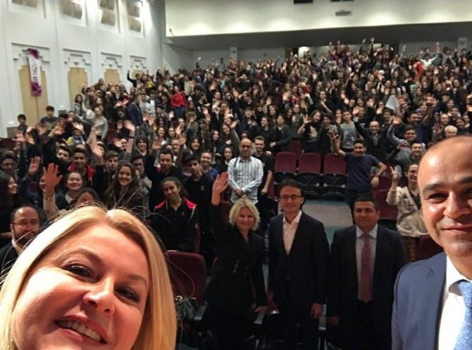 Paranın da tek başına başarı kriteri olmadığını vurgulayan Arıboğan, şöyle konuştu: "Güzel bir aileye sahip olmak, sağlıklı ve huzurlu olmak, birileri için bir şeyler yapabilmek, başkasını mutlu etmek büyük bir başarıdır aslında. İnsanın yaşadığı, çevresine pozitif ışık verebildiği her an büyük bir mutluluk vesilesidir. En büyük başarı budur. Mutlu olabilmeyi başarmaktır. Başarı hikayenizi kendiniz tayin edeceksiniz." İzmir İl Milli Eğitim Müdürü Ömer Yahşi, Prof. Dr. Deniz Ülke Arıboğan’a teşekkür plaketi vererek öğrencilerle birlikte özçekim gerçekleştirdi.