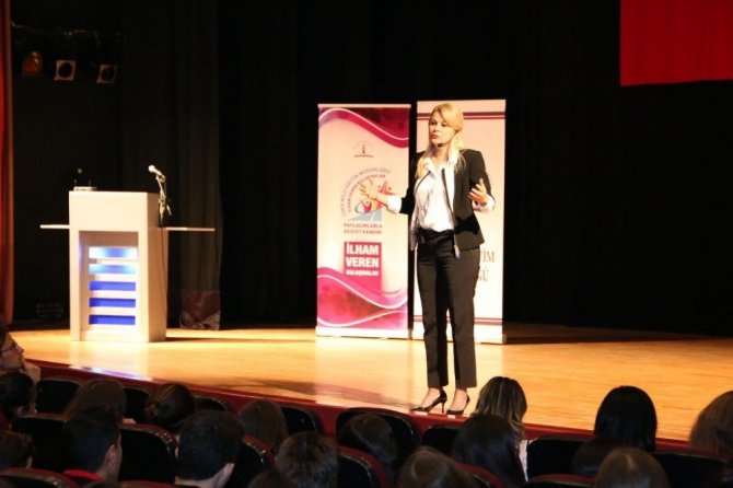 Konuşmasına başarı kriterinin, yaşamın her döneminde farklı olabileceğini belirterek başlayan Prof. Dr. Deniz Ülke Arıboğan kendi yaşamından örnekler vererek sözlerine şöyle devam etti: ’’Ailemin benden başarı odaklı bir beklentisi olmadı. Hatta annem liseyi bitirip karnemi götürdüğümde okulu aradı gerçekten bitirdim mi diye. Hayatın ne getireceği hiç belli olmaz. Hayatta başarının nerede, nasıl geleceği hiç belli olmuyor. Başarı tek bir formül üzerinden gelmiyor. Sistem size bir takım değerler veriyor. Örneğin güzellik kavramı çağlar boyunca değişiklik göstermiştir. Eskiden biraz daha kilolu insan olmak güzellik kriterlerinin başında geliyordu. Günümüzde bize empoze edilen güzellik algısı üzerinden düşünmemiz ve buna göre tercihlerimizi yapmamızı istiyorlar. Başarı kriterleri sabit değildir. Kendinize ait başarı kriterlerinizi oluşturun." İnsanların düşüncelerinin yönlendirilip ilgi ve ihtiyaçlarını şekillendirilmesine de değinen Arıboğan gençlere başarı konusunda ufuklarını açıcı başka örneklerin de olabileceğini göstermek gerektiğinin altını çizdi.