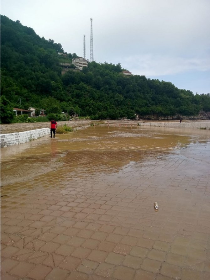 Zonguldak'ta yüksek kesimlerde etkili olan şiddetli yağış sonrası Ilıksu deresinin debisi yükseldi. Derenin yol ile aynı seviyeye çıkması üzerine itfaiye ekipleri bölgede çalışma başlatarak plaj tesislerine girişi kapattı.