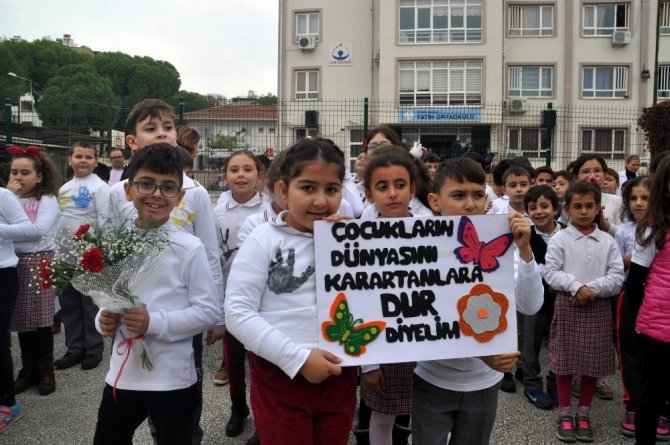 İlkokul öğrencileri şiddete hayır etkinliğinde büyüklerine seslendi