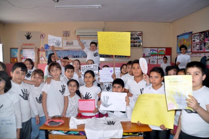 Bembeyaz kıyafetleri üzerine boyaya batırılmış avuçlarını bastırarak ‘hayır’ işareti yapan öğrencilerin amacı çocuklara olan şiddetin önlenmesi için farkındalık oluşturmaktı. Evlerde ve sınıflarında tek tek ellerini fırça yaparak T-Shirtlerini boyayan öğrenciler okul bahçesinde toplanarak şiirler, şarkılar söyledi, taşıdıkları pankartlarda yazılı olan ve çocukların da hakları olduğunu ifade eden yazılarla büyüklerinin dikkatlerini çekmek için uğraş veren öğrencilerin etkinliği büyük ilgi gördü.