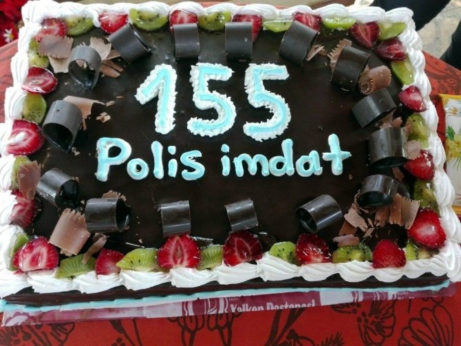 İlkokul öğrencilerinden polislere pastalı kutlama