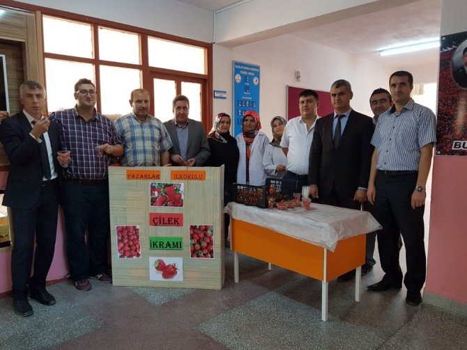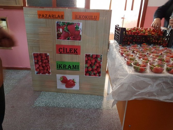 Okulun imkanlarıyla öğrencilere Pazarlarda yetiştirilen organik çilek ikramı yapıldı. 160 tane öğrenci sınıf sınıf çağrılarak çilek ikram edildi.