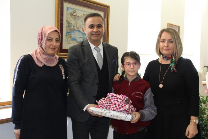 İleride bilim insanı olmayı hedefleyen 10 yaşındaki Elanur, iyi derecede İngilizce konuşurken, ikinci yabancı dil olarak da Fransızca çalışıyor. Elanur, kendisinin icat ettiği bir harf kodlama biçimiyle günlüğüne yazılar yazıyor. Günlüğünü kendi oluşturduğu alfabeyle kaleme alan Elanur, aynı zamanda tasarladığı projeleri de kağıda dökerek gerekli çizimleri gerçekleştirdiğini söyledi. Ziyaretin sonunda hatıra fotoğrafı çektirilirken, İzmir İl Milli Eğitim Müdürü Ömer Yahşi, Elanur’u çeşitli hediyelerle ödüllendirdi.
