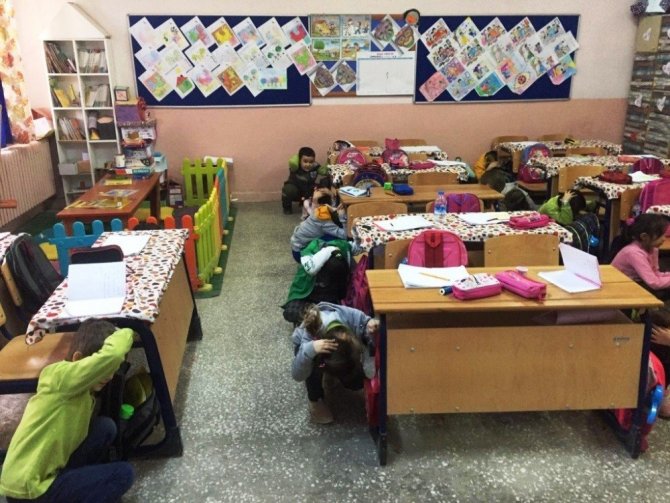 Öğrencilerin okulda deprem sırasında nasıl davranmaları gerektiğini en iyi şekilde kavramaları için habersiz deprem ve personel tahliye tatbikatı gerçekleştirdiklerini söyleyen Okul Müdürü Ahmet Aydoğdu,” Öğrencilerimiz çalan siren ile deprem olduğu varsayılarak deprem anında nasıl davranacakları konusunda tecrübe kazanmış oldular. Sonrasında çalan siren ile de Personel Tahliye Tatbikatı gerçekleştirildi. 176 öğrenci ve 11 personel, 84 saniyede okul binasını güvenli bir şekilde boşaltarak okul bahçesindeki toplanma alanında toplandılar” dedi.