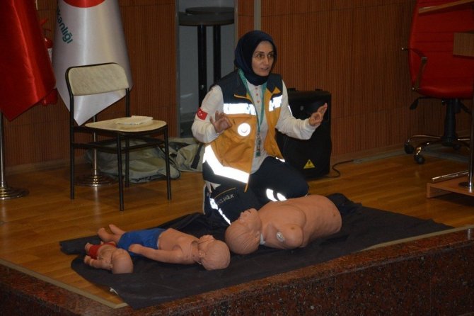 Kadın Doğum ve Çocuk Hastalıkları Hastanesi’nde verilen ve 2 grup halinde gerçekleştirilen uygulamalı ilkyardım eğitimine 80 personel katıldı.