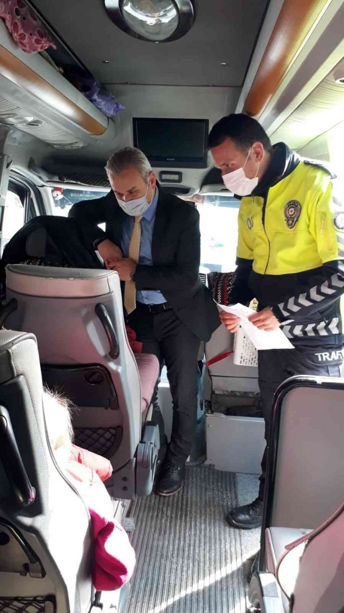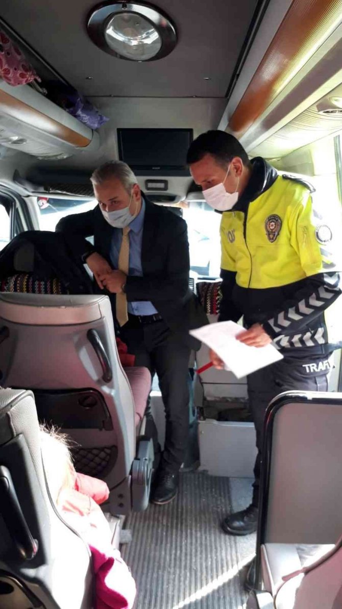 Trafik polisleri ekiplerince öğrencilere hijyen, maske ve mesafe konularında da bilgi verildi. Denetimlere İlçe Milli Eğitim Müdürlüğü Şube Müdürleri de katıldı.