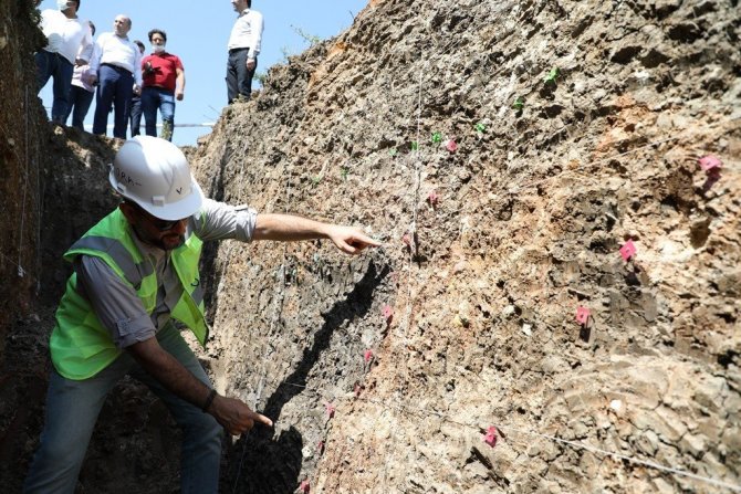 Edebey bölgesinde yapılan kazılarla ulaşılan fay hattı üzerinde İnegöl fay hattının karakteristik özelliklerinin belirlenmesi çalışmasını sürdüren...