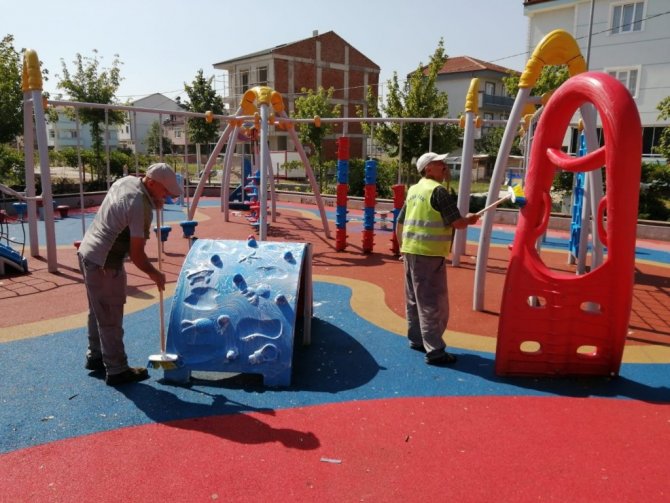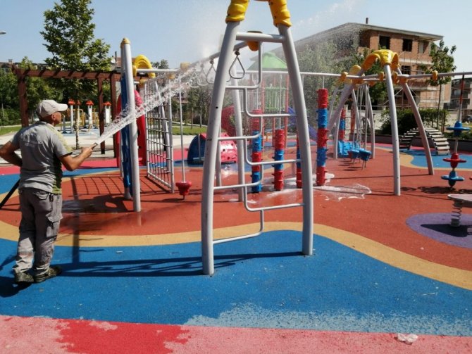 Bu kapsamda Temizlik İşleri Müdürlüğü kırsal bölgelerde mahalle meydanları ve ana arterleri süpürge araçlarıyla temizlerken, Park Bahçeler Müdürlüğü de kırsal ve merkez mahallelerde çocuk oyun alanlarını yıkayıp temizleyerek bayrama hazırlıyor. Her iki Müdürlük de tüm birimleriyle sahaya inip şehri bayrama hazırlamak adına hummalı bir çalışma yürütüyor.