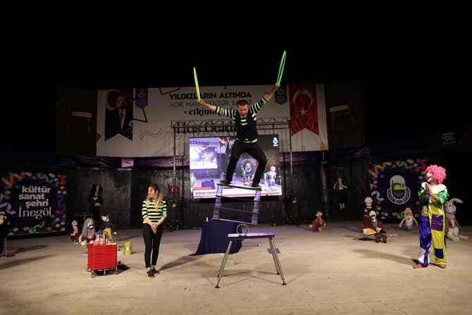 İnegöl Belediyesi'nin Yıldızların Altın Açık Hava Kültür Sanat Etkinlikleri kapsamında düzenlediği "Yetenek Sirkiniz" sirk gösterisi ile kukla gösterisi, başta minikler olmak üzere programa katılan herkese eğlence dolu anlar yaşattı.
