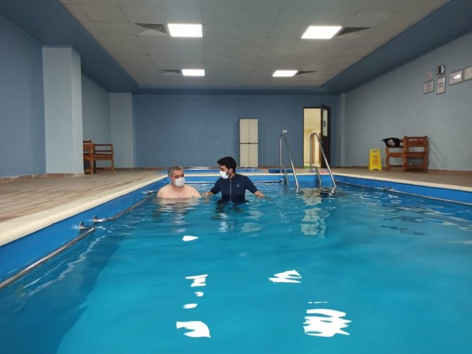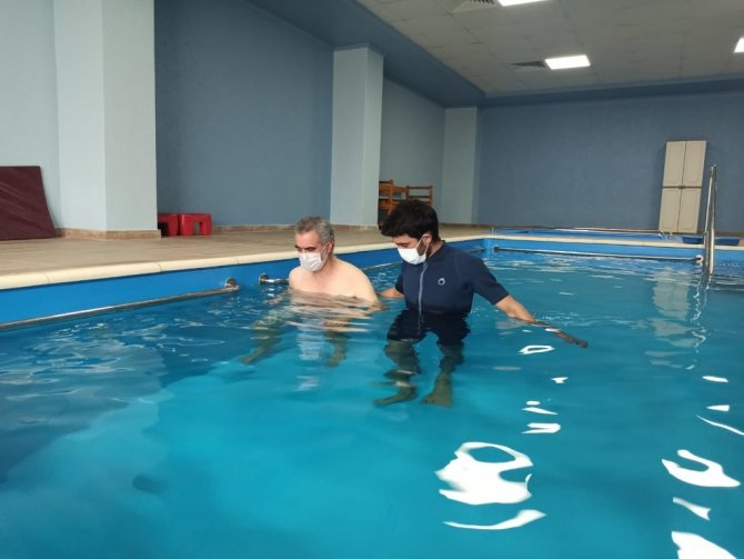 Hastanın durumuyla alakalı konuşan Fizyoterapist Hüseyin Hüseyin, geldiğinde hastanın denge sorunu yaşadığını ve buna bağlı olarak yürümekte güçlük çektiğini belirtti. Doktorların değerlendirmesinin ardından, planlanan programlar sayesinde 1 ayda büyük bir aşama kaydettiklerini aktaran Hüseyin, "Hastamız yaklaşık bir aydır bizimle. İlk geldiğinde merdiven çıkamıyordu, yürüyüş dengesi bozuktu, ağırlık aktarımı çok kötüydü. Doktorlarımızın yönlendirmesi ile tedavi programımızı şekillendirdik. Bir saat havuz, bir saat yürüme, bir saat yatak içi egzersiz, bir saat de sanal gerçeklik şeklinde toplam 4 saatlik bir programımız var. İkinci haftanın sonunda bir değerlendirmesini yaptık, her şey çok iyiydi. Bugün son günü; bağımsız bir şekilde merdiven çıkabiliyor, yürüyüş kalitesi çok çok arttı, kuvveti arttı. Şu an her şey istediğimiz ve planladığımız şekilde ilerliyor" dedi.