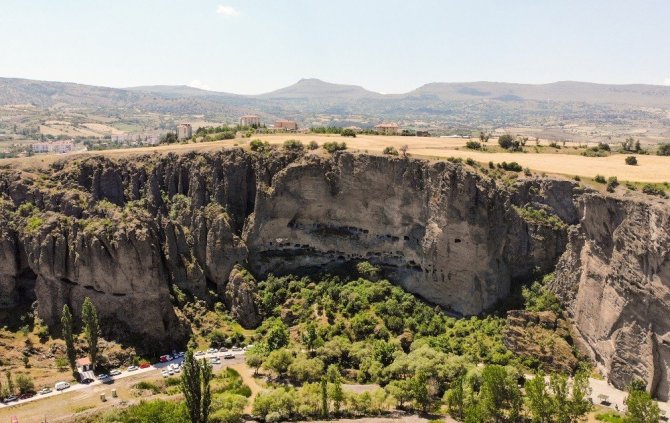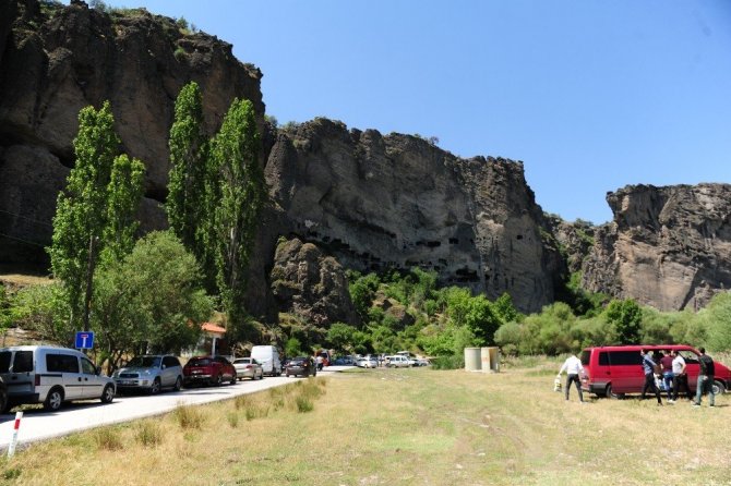 Ankara’ya 90 kilometre uzaklıkta bulunan İnönü Mağaraları’nın tarihinin milattan önce 2000’li yıllara Hititler dönemine uzandığı tahmin ediliyor. Kirmir Çayı vadisi boyunca kayalara oyulmuş mağaralar, Kültür Bakanlığı Ankara Kültür ve Tabiat Varlıklarını Koruma Kurulu tarafından 1. derece arkeolojik ve doğal sit alanı olarak koruma altında bulunuyor. Tarihi güzelliği ile vatandaşları kendine çeken İnönü Mağaraları, doğasıyla da büyülüyor. Merdivenlerden çıkarak dağın ortasına oyulu mağaralara ulaşan vatandaşlar, Kirmir Çayı ve çevresindeki doğal güzelliği yukarıdan seyretmenin keyfini çıkarıyor. İnönü Mağaraları ve çevresi drone ile de havadan görüntülendi.