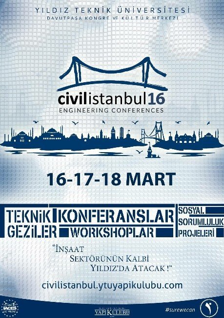 Yıldız Teknik Üniversitesi inşaat mühendisliği öğrencileri tarafından kurulan Yapı Kulübü’nün düzenlediği Civil İstanbul’16 etkinliği 16 Mart Çarşamba Günü YTÜ Davutpaşa Kampüsü Kongre ve Kültür Merkezi’nde düzenlenecek.