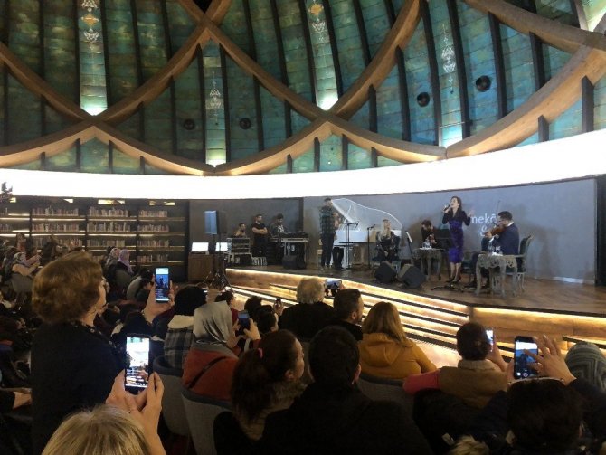 Yaklaşık 2 saat süren gecede İpek Açar Türk müziğinin unutulmaz bestelerini seslendirirken Alper Kömürcü de keman çaldı.
