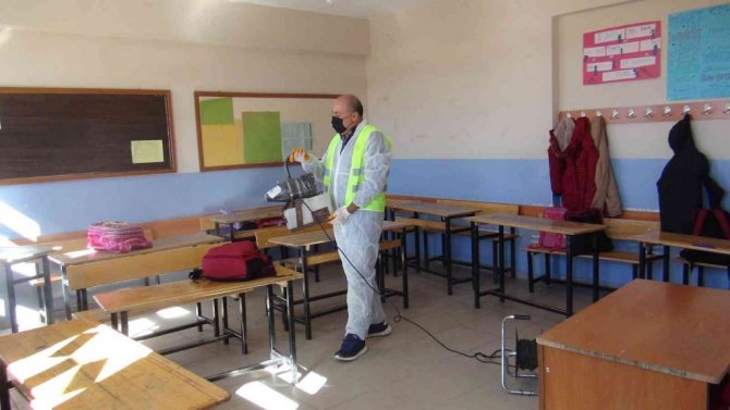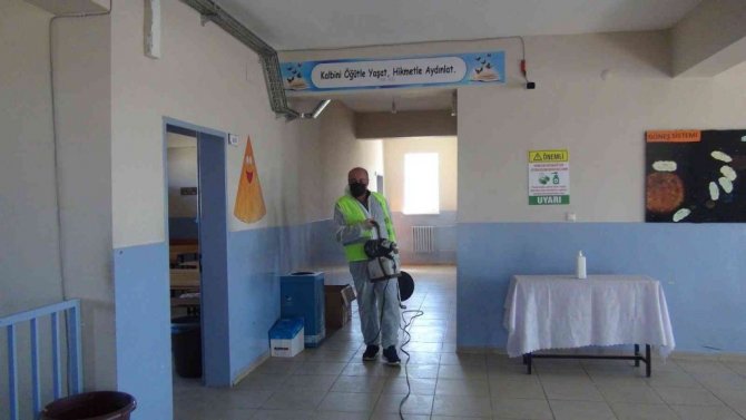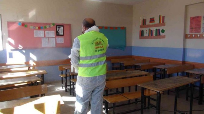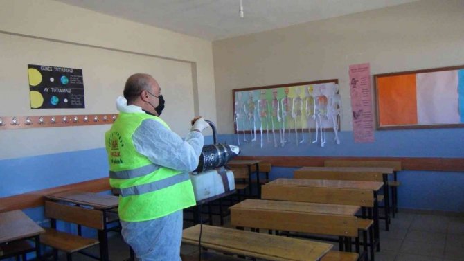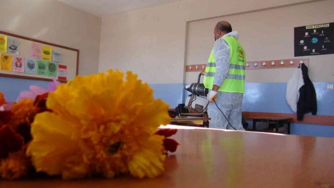Van'ın İpekyolu Belediyesi Çevre Koruma ve Kontrol Müdürlüğü ekipleri, okullarda korona virüs (Covid-19) tehdidine karşı dezenfekte işlemini aralıksız sürdürüyor.