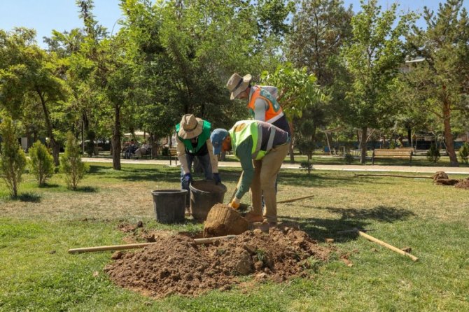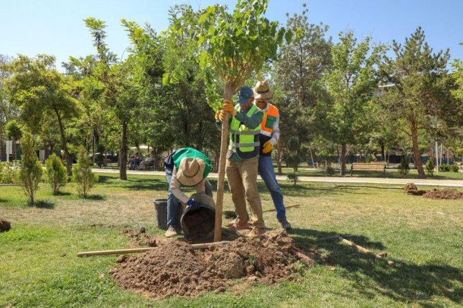 Van'ın İpekyolu Belediyesi Park ve Bahçeler Müdürlüğü ekipleri kent genelindeki ağaçlandırma çalışmalarını sürdürüyor.