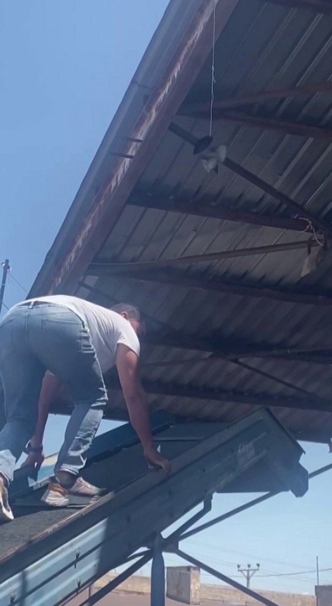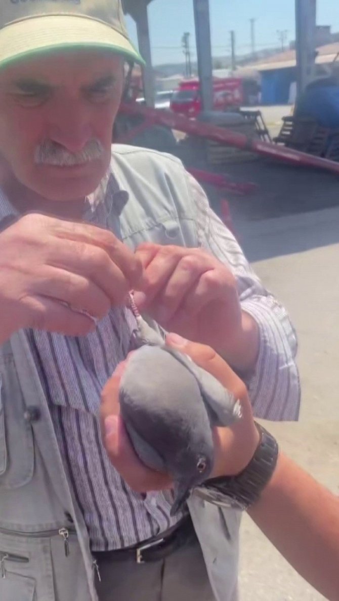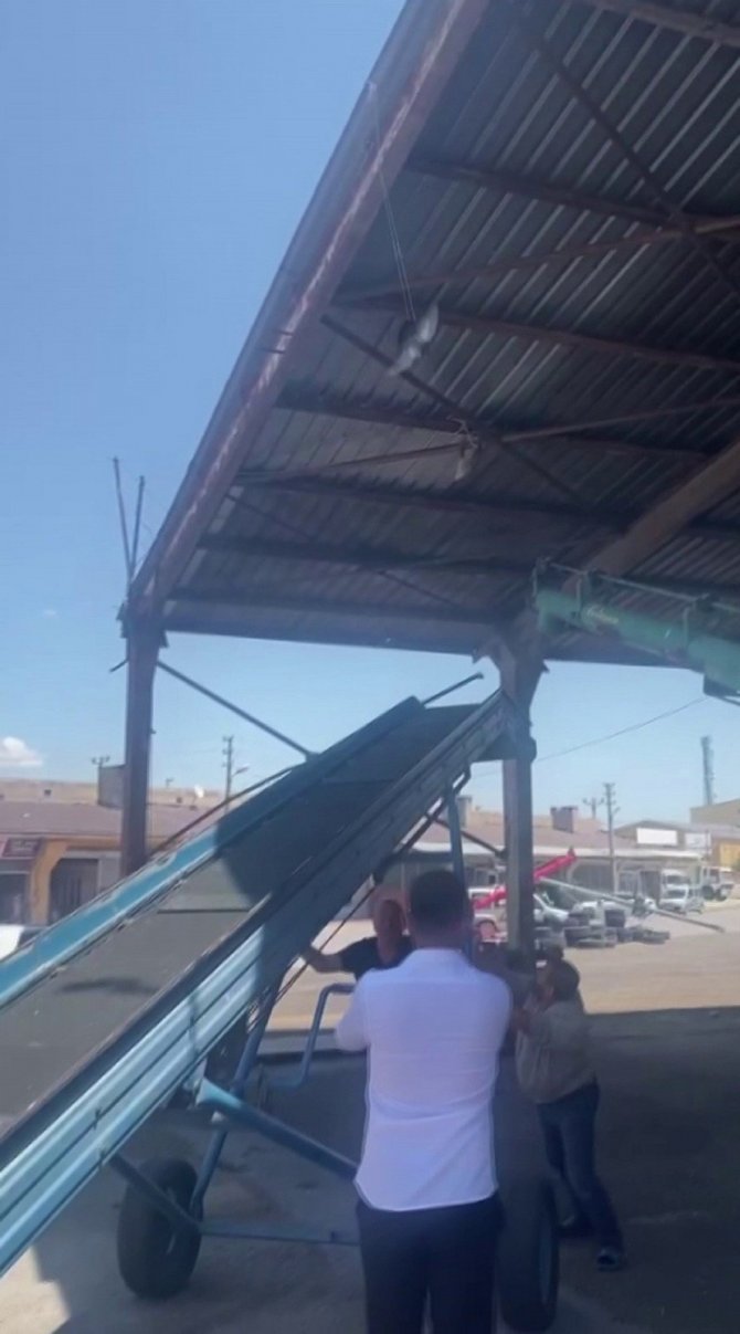 Olay kent merkezi Gültepe Mahallesi'nde bulunan yeni buğday pazarında meydana geldi. Bir güvercinin ayağı ipe dolanınca çatıda asılı kaldı. O sırada güvercini çırpınırken gören hayvan sever esnaf hemen güvercinin yardımına koştu. Yükleme bandını alan esnaf üzerine çıkarak mahsur kalan kuşu özgürlüğüne kavuşturdu. O anlar cep telefonu kamerasına yansıdı.