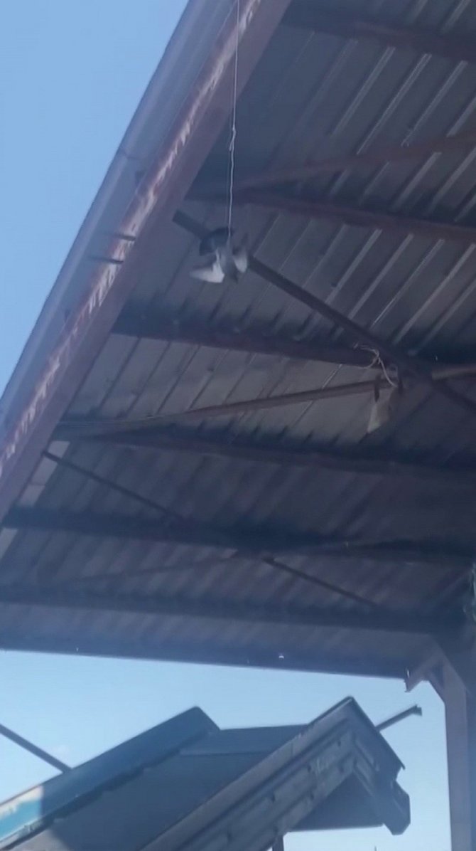 Sivas'ta ayağı ipe dolanarak çatıda asılı kalan güvercini çevredeki esnaf kurtardı, o anlar cep telefonu kamerasına yansıdı.