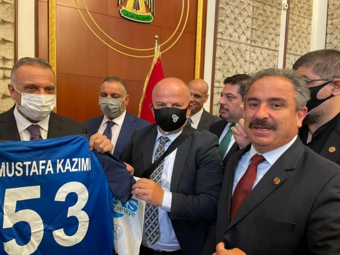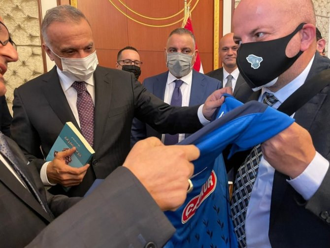 Irak Gazeteciler Cemiyetinin daveti üzerine Bağdat'ta düzenlenecek devlet başkanları zirvesine katılmak için Irak'a giden gazeteciler, Irak Başbakanı Mustafa el-Kazımi'ye Çaykur Rizespor forması hediye etti.