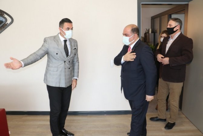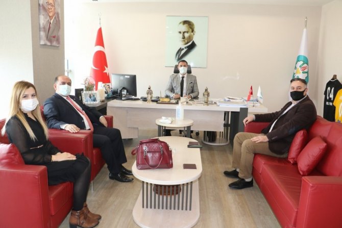 Türkiye-Irak Sanayicileri ve İş İnsanları Derneği (TISİAD) Genel Başkanı Nevaf Kılıç ve Manisa Şube Başkanı İbrahim Hakkı Katıöz, Manisa Büyükşehir Belediyesi Genel Sekreter Yardımcısı Ertuğrul Yıldırım'ı makamında ziyaret etti. İş insanlarının her iki ülke arasındaki ticaretini arttırmaya yönelik çalışmalar yaptıklarını ifade eden Nevaf Kılıç, Manisa ziyaretleri kapsamında kurumları sırasıyla ziyaret ettiklerini, Manisa Büyükşehir Belediyesi'ni de ziyaret etmek istediklerini söyledi. Manisa Büyükşehir Belediyesi Genel Sekreter Yardımcısı Ertuğrul Yıldırım, yapılan ziyaretten duyduğu memnuniyeti ifade ederek, TISİAD Genel Başkanı Nevaf Kılıç ve Manisa Şube Başkanı İbrahim Hakkı Katıöz'e çalışmalarında başarı dileklerini iletti.