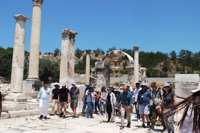 Stratonikeia Antik Kenti'nde yapılan kazı çalışmalarıyla ilgili olarak İş Sanat Genel Müdürü Zuhal Üreten, İş Bankası Kurumsal İletişim Müdürü Gül Meltem Atılgan ve Stratonikeia Antik Kenti Kazı Başkanı Prof. Dr. Bilal Söğüt'ün katılımlarıyla bir inceleme ziyareti gerçekleştirildi.