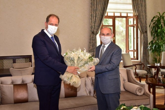 Manisa Ticaret Borsası Yönetim Kurulu Başkanı Sadık Özkasap ve yönetimi de Vali Yaşar Karadeniz’e hayırlı olsun ziyaretinde bulundu.