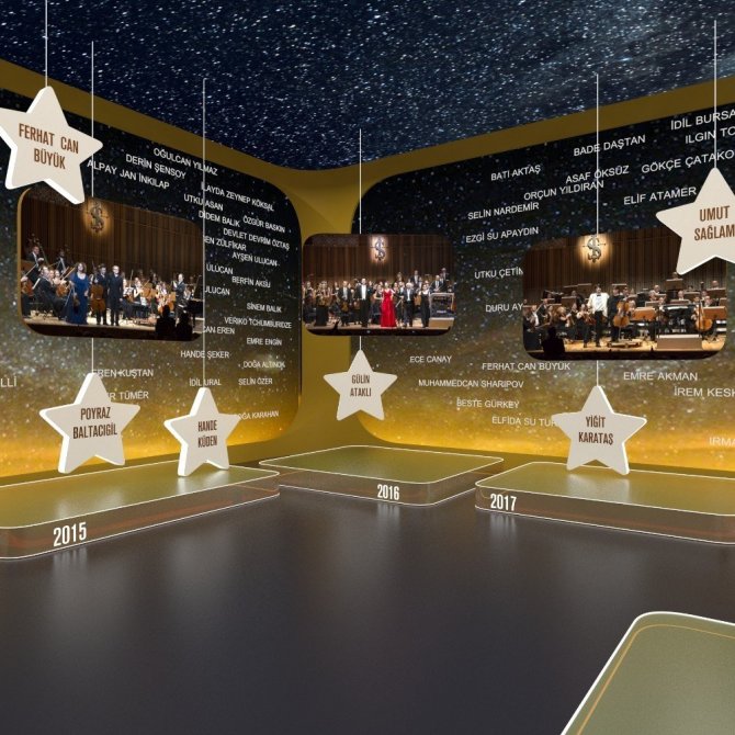 Çevrimiçi hazırlanan sergi, "Divalar", "Dünyanın Sesi", "Yerelle Evrenselin Buluşması", "Ustalara Saygı", "Virtüöz Ezgiler", "Parlayan Yıldızlar", "Masallar Diyarı", "Kitaplardan Mikrofonlara" ve "Kulisin Sesi" sahnelerinden oluşuyor. Bugüne kadar sahne alan Cesaria Evora, Magdelena Kozena, Estrella Morente gibi efsanevi kadın sanatçılar "Divalar" bölümünde anılıyor. Paco Pena ile The Tiger Lillies'i, Hindistan'la Küba'yı yan yana getiren "Dünyanın Sesi" İş Sanat'ın sezon programlarını renklendiren dünya müziğinin önemli temsilcileri ve dans topluluklarına yer veriyor. "Yerelle Evrenselin Buluşması"nda ülkemizin özgün orkestra ve solistlerini uluslararası sahnelerin yıldız isimleriyle bir araya getiren özel projeler, fotoğraflar ve videolar eşliğinde sergileniyor. "Ustalara Saygı" köşesinde flamenko ile cazı, deyiş ile rock'ı, klasik müzik ile pop'u sentezleyip kendilerine özgü bir tarz oluşturmuş isimler hatırlanıyor. "Virtüöz Ezgiler" bölümünde Londra Filarmoni, Academy of St. Martin in the Fields gibi klasik müzik dünyasının köklü orkestraları ile Christoph Eschenbach, Hilary Hahn, Joshua Bell gibi duayen şef ve müzisyenler konuk oluyor. İş Sanat'ın klasik müzik dünyasına adım atan genç sanatçılara destek olmak üzere yürüttüğü projesi "Parlayan Yıldızlar" ve "Meriç Soylu Ödülü" de bu sergide hatırlananlar arasında yer alıyor. Çocuklar için özenle hazırlanan oyunlar ve müzikli temsiller "Masallar Diyarı" bölümünde, Türk edebiyatının seçkin örneklerinden oluşan dinletiler "Kitaplardan Mikrofonlara" bölümünde izlenebiliyor. Sahne öncesi ve sonrasında yaşanan mutluluk ve heyecana dair anılar "Kulisin Sesi" ile sergiye taşınıyor.