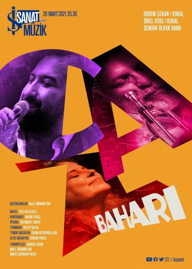 İş Sanat'ın İş Kuleleri Salonu'nda izleyicisiz olarak kaydedilen, şarkı düzenlemelerini piyanist ve trompet sanatçısı Halil İbrahim Işık'ın yaptığı konser, ilk gösterim tarihi 20 Mart Cumartesi günü saat 20.30'dan itibaren İş Sanat'ın video paylaşım platformu kanalı ve internet sitesi üzerinden sezon boyunca izlenebilecek. Trompet sanatçısı Şenova Ülker tarafından kurulan toplulukta, Ediz Hafızoğlu (davul), Kağan Yıldız (kontrbas), Ercüment Orkut (piyano), Bulut Gülen (trombon), Engin Recepoğulları (tenor saksafon), Serhan Erkol (alto saksafon) ve Barış Doğukan Yazıcı (trompet) yer alıyor.