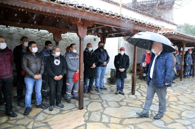 Toplu iş sözleşmesi sonrası Menteşe Belediye Başkanı Bahattin Gümüş, Başkan Yardımcıları, DİSK Genel- İş Muğla Şube Başkanı Uzay Kocabaş ile birlikte işçiler toplu iş sözleşmesini zeybek oynayarak kutladılar.