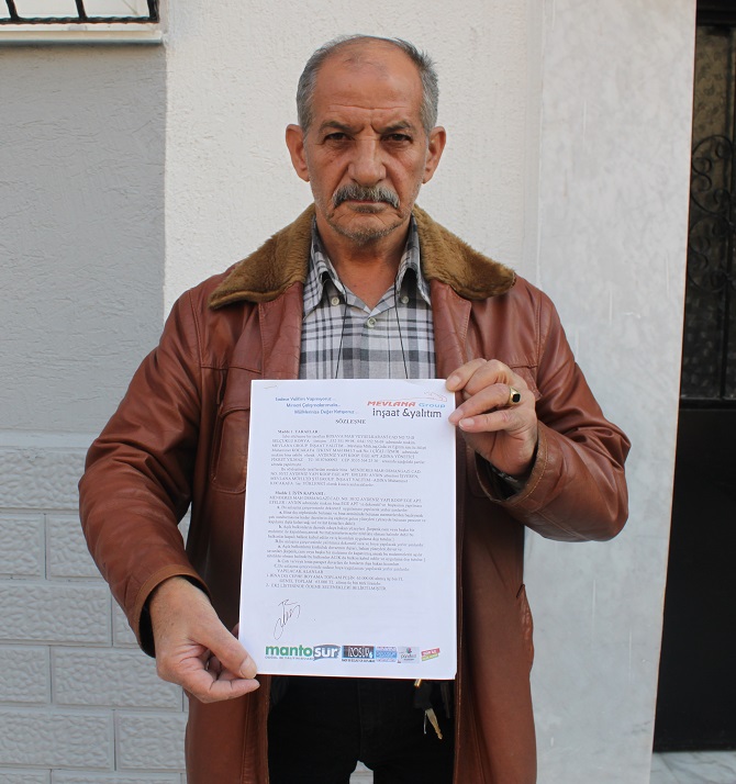 Efeler ilçesi Adnan Menderes Mahallesinde bulunan Aydeniz Yapı Kooperatifi Ege Apartmanı A Blok sakinleri apartmanlarının yenilenmesi konusunda karar aldı. Yaptıkları piyasa araştırmasından sonra kısa adı “Mevlana İnşaat” olan Mevlana Müh. İnş. Gıda ve Eğitim San. Ltd. Şti. yetkilisi ile apartman yöneticisi Haziran ayında sözleşme imzaladı. İşi alan yüklenici firma yenileme çalışmalarına başladı. Sözleşme gereği 63 bin lira peşin alan Mevlana İnşaat, 45 günün sonunda tamamlaması gereken işi yarım bırakıp gitti.