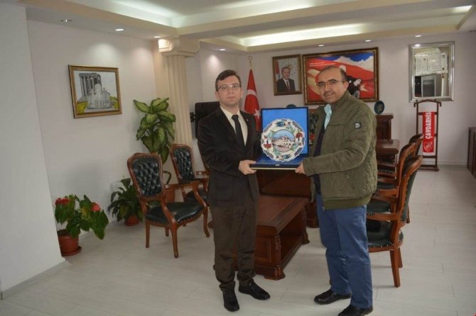 Cumhurbaşkanı Recep Tayyip Erdoğan’ın, muhtarlarımızın farklı kültürleri görebilmesi için yurt dışı gezilerinin organize edilmesi talimatı üzerine İspanya gezisine katılan Çavdarhisar ilçesi İlcikören Köyü Muhtarı İhsan Şahin, gezi dönüşü Kurtuba Camii’nin işlendiği çini tabağı Kaymakam Furkan Berber’e hediye etti.