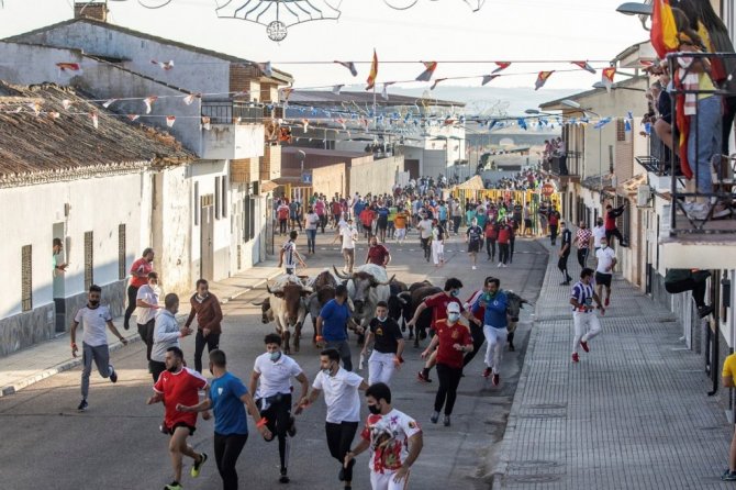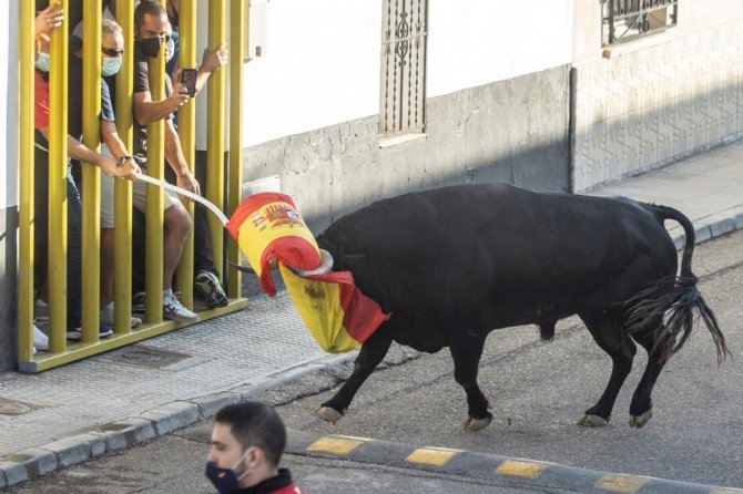 İspanya'nın Kastilya-La Mancha bölgesinde yer alan Toledo şehrine bağlı Villaseca de la Sagra'da bugün başlayan Alfarero de Oro Fuarı kapsamında Covid-19 salgınının başından bu yana ülkede ilk kez boğa koşusu yapıldı. Salgın nedeniyle İspanya'da hala birçok kısıtlama devam ederken, yaklaşık 2 bin nüfuslu Villaseca de la Sagra kasabası ülkede boğa koşusunun yapıldığı ilk şehir oldu.