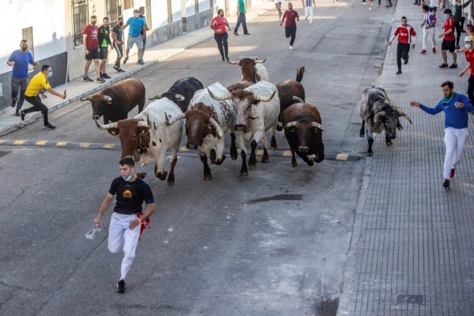 İspanya'da Covid-19 salgınının başından bu yana ilk boğa koşusu organizasyonu yapıldı.