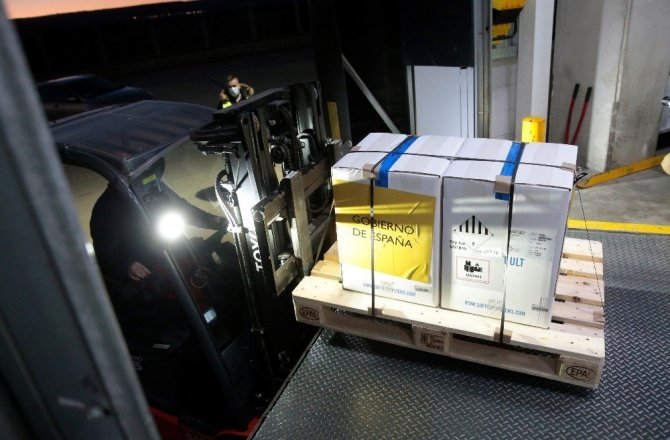 Dünya genelinde yeni tip korona virüs (Covid-19) salgını ile mücadele devam ederken, birçok ülkeye yapılan anlaşmalar çerçevesinde aşıların sevkiyatı gerçekleştiriliyor. İspanya'ya, BioNTech-Pfizer'ın geliştirdiği Covid-19 aşısının ilk sevkiyatı ulaştı. İlk sevkiyat, Guadalajara kentindeki Pfizer lojistik merkezine geldi. İlk aşıların yarın kentteki bir huzurevi çalışanına ve yaşlı bir kişiye yapılacağı belirtildi. Söz konusu kişiler, aşı dozu alacak ilk iki kişi olacak.