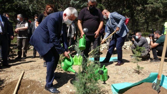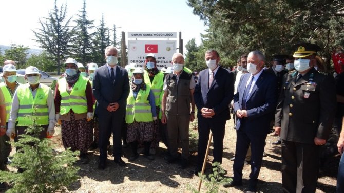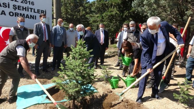 Isparta'da protokol üyeleri, 15 Temmuz Demokrasi Şehitleri Hatıra Ormanı'na fidan dikerek, daha önce dikilen fidanların bakımını yaptı.