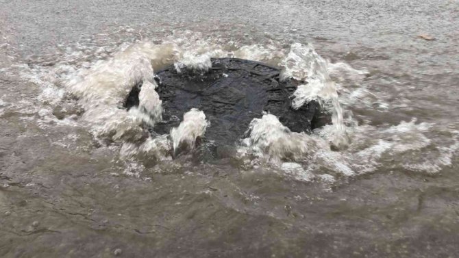 Isparta’da etkili yağış sonrası rögar kapakları taştı