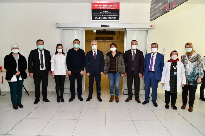 Vali Seymenoğlu Uzman Dr. Serdal Gül'ün eşi Fulya Gül ile birlikte "Uzman Dr. Serdal Gül Radyoloji Ünitesi"nin açılışını yaptı. 23 yıl boyunca Isparta Devlet Hastanesi ve Şehir Hastanesi'nde görev yapan Dr. Gül için eşi Fulya Gül'e yeniden taziyelerini ileten Vali Seymenoğlu sağlık çalışanlarının sadece salgın döneminde değil her dönemde insanların sağlığı için fedakarca görev yaptıklarını dile getirerek, " Serdar hocamıza Allah gani gani rahmet eylesin. Onun ismini, hatırasını çalıştığı yaşatabilmek için Sağlık İl Müdürlüğümüz ve Baştabipliğimiz sizlerin de onayı dahilinde radyoloji bölümüne ismini vermişler biz de sizlerle birlik olabilmek adına koşa koşa geldik. Benim için de büyük bir onur olacak. Bu vesileyle Serdar Beye Allah'tan rahmet diliyorum, sizlere sabırlar diliyorum. Bu duygularla tüm şehir hastanesi personeline çok çok teşekkür ediyorum tüm sağlık camiasının 14 Mart Tıp Bayramı'nı tebrik ediyorum." dedi.