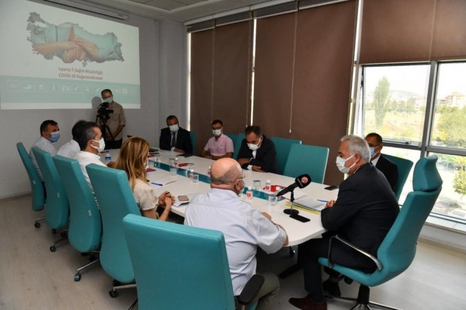 Isparta'nın korona virüs(Covid-19) salgınındaki son durumu Vali Ömer Seymenoğlu başkanlığında yapılan toplantıyla masaya yatırıldı. İl Sağlık Müdürlüğünde gerçekleşen toplantıya İl Sağlık Müdürü Dr. Mehmet Karakaya kamu ve üniversite hastaneleri başhekimleri ve sağlık yöneticileri katıldı.,