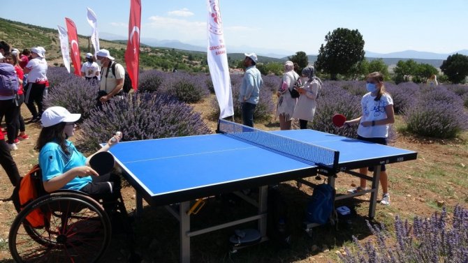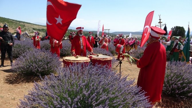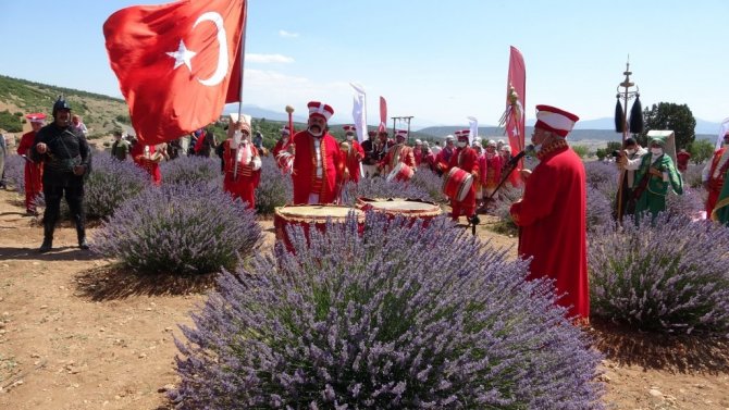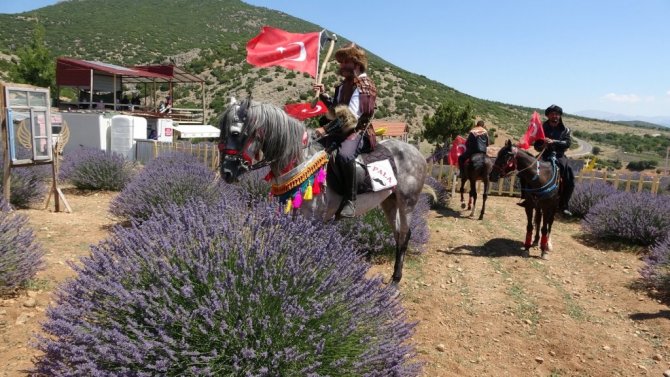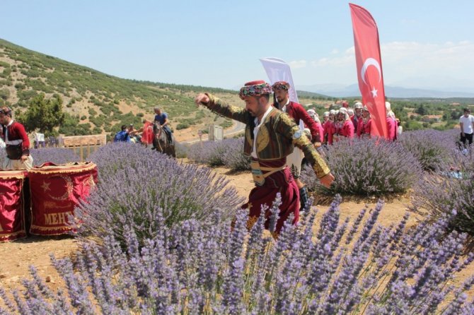 Isparta'nın Keçiborlu ilçesine bağlı Kuyucak köyünde lavanta sezonu açılışında sporcular ve halk oyunları ekibi mor renkli bahçelerde gösteri yaparken,...