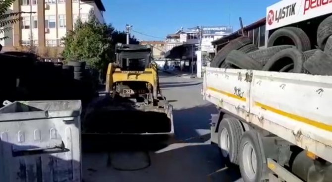 Isparta Belediyesi tarafından, yeni sanayi sitesinde bulunan ve ömürleri tükenen lastikler belediye ekiplerince tek tek toplandı.