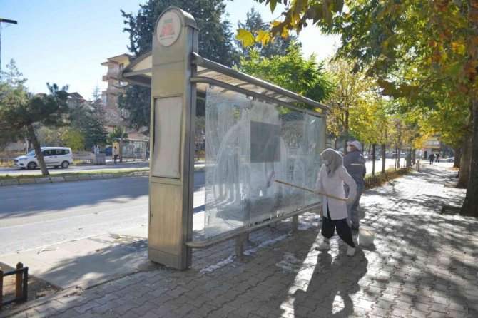 Halkın yoğun olarak kullandığı alanlardan biri de otobüs durakları. Havaların soğumasıyla birlikte özellikle kapalı otobüs duraklarının kullanımı da arttı. Temizlik İşleri Müdürlüğü ekipleri, periyodik olarak açık ve kapalı otobüs duraklarının iç, dış temizliğini gerçekleştiriyor. Otobüs duraklarının camları ve oturma alanları sabunlu suyla yıkanarak, temizleniyor. Bu şekilde duraklar vatandaşların kullanımı için daha sağlıklı hale getiriliyor. Ayrıca otobüs duraklarının da diğer toplu kullanım alanlarında olduğu gibi periyodik olarak dezenfeksiyon işlemleri sürdürülüyor.