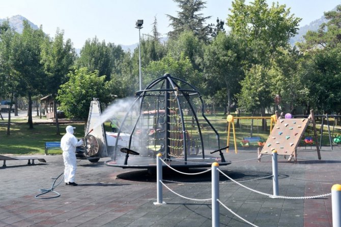 Isparta’da parklar ve çocuk oyun alanları temizleniyor, dezenfeksiyonu yapılıyor