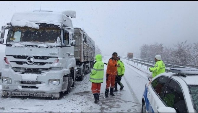 Isparta'da yoğun kar yağışı nedeniyle zor anlar yaşayan sürücülerin yardımına polis ekipleri yetişti.