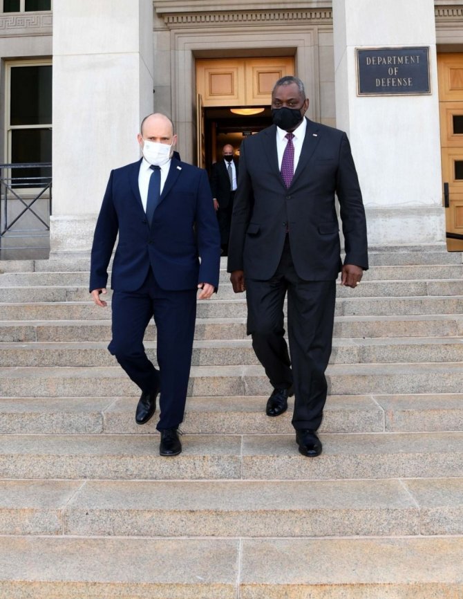 Göreve gelmesinin sonra ABD'ye İsrail Başbakanı olarak ilk ziyaretini gerçekleşen Naftali Bennett, ABD Savunma Bakanı Lloyd Austin ile bir araya geldi.