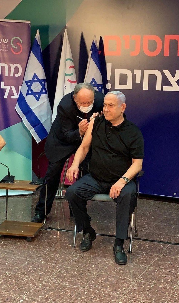 İsrail Başbakanı Binyamin Netanyahu, akşam saatlerinde Tel Aviv yakınlarındaki Ramat Gan'da bulunan Sheba Tıp Merkezi'nde canlı olarak gerçekleştirilen yayın sırasında korona virüs aşısı oldu. Netanyahu aşı yapılmadan önceki konuşmasında, "Bu İsrail Devleti için çok büyük bir gün. Neredeyse 1 yıldır insanlığın son 100 yılda karşı karşıya kaldığı en kötü salgını yaşıyoruz. Bugün ise kurtuluşun başlangıcı" dedi. Netanyahu, İsrail halkına aşı olmaları için çağrıda bulunarak, "İsrail'e milyonlarca aşı getirdik, herkesin aşılanması gerekiyor. Bugün kişisel bir örnek olmak ve sizleri de aşı olmaya teşvik etmek için ilk aşının bana ve Sağlık Bakanı Yuli Edelstein'a yapılmasını istedim" dedi.