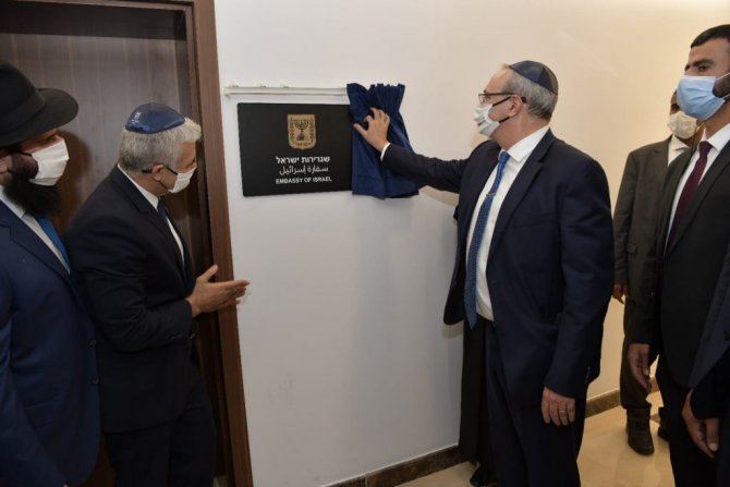 Lapid, Abu Dabi'ye ulaşmasında sonra BAE Kültür ve Gençlik Bakanı Nora Al Kaabi eşliğinde İsrail'in Abu Dabi Büyükelçiliği'nin açılış törenine katıldı. Açılışın ardından açıklama yapan Lapid, "İsrail komşularıyla barış istiyor. Bütün komşularıyla. Hiçbir yere gitmiyoruz. Orta Doğu bizim evimiz. Burada kalacağız. Tüm bölgedeki ülkelere bunu tanımaya ve bizimle konuşmaya çağırıyoruz" ifadelerini kullandı.