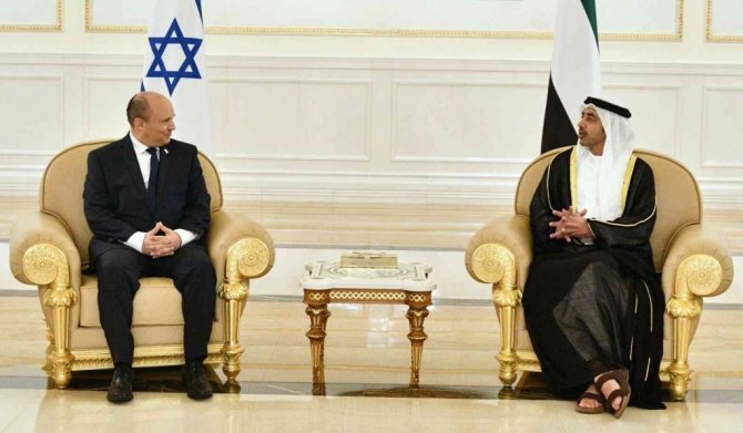 İsrail ve Birleşik Arap Emirlikleri (BAE) arasında diplomatik ilişkilerin yeniden kurulmasına karar verilmesinin ardından ilk defa bir İsrail başbakanı BAE'yi ziyaret etti. İsrail Başbakanı Naftali Bennett'i taşıyan uçak, Abu Dabi'deki Kraliyet Havalimanı'na indi. Bennett'i BAE Dışişleri Bakanı Şeyh Abdullah bin Zayed karşıladı.